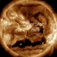 Earth is inside a stream of solar wind flowing from this broad coronal hole. Credit: NASA/SDO | more data