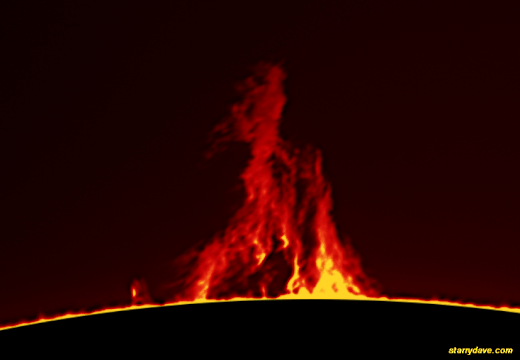 A BONFIRE OF HYDROGEN: There is no combustion on the sun. Even so, on Nov. 25th, amateur astronomer Dave Wilson of Inverness, Scotland, saw a tremendous bonfire: