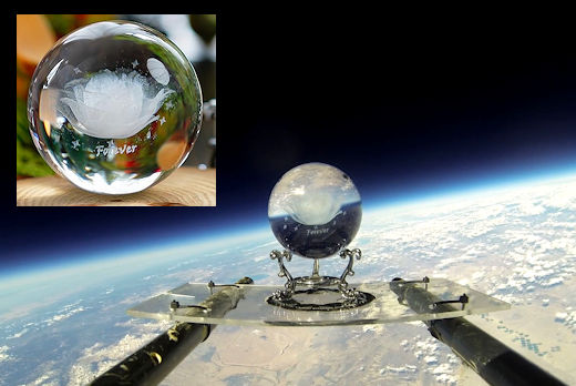You can have it for $98.95. The 3-dimensional rose is laser etched inside a 2.3-inch diameter premium K9 crystal ball. The word "forever" is inscribed beneath the rose to denote eternal love. The stand is included, and it comes with a unique gift card showing the crystal ball at the top of Earth’s atmosphere.