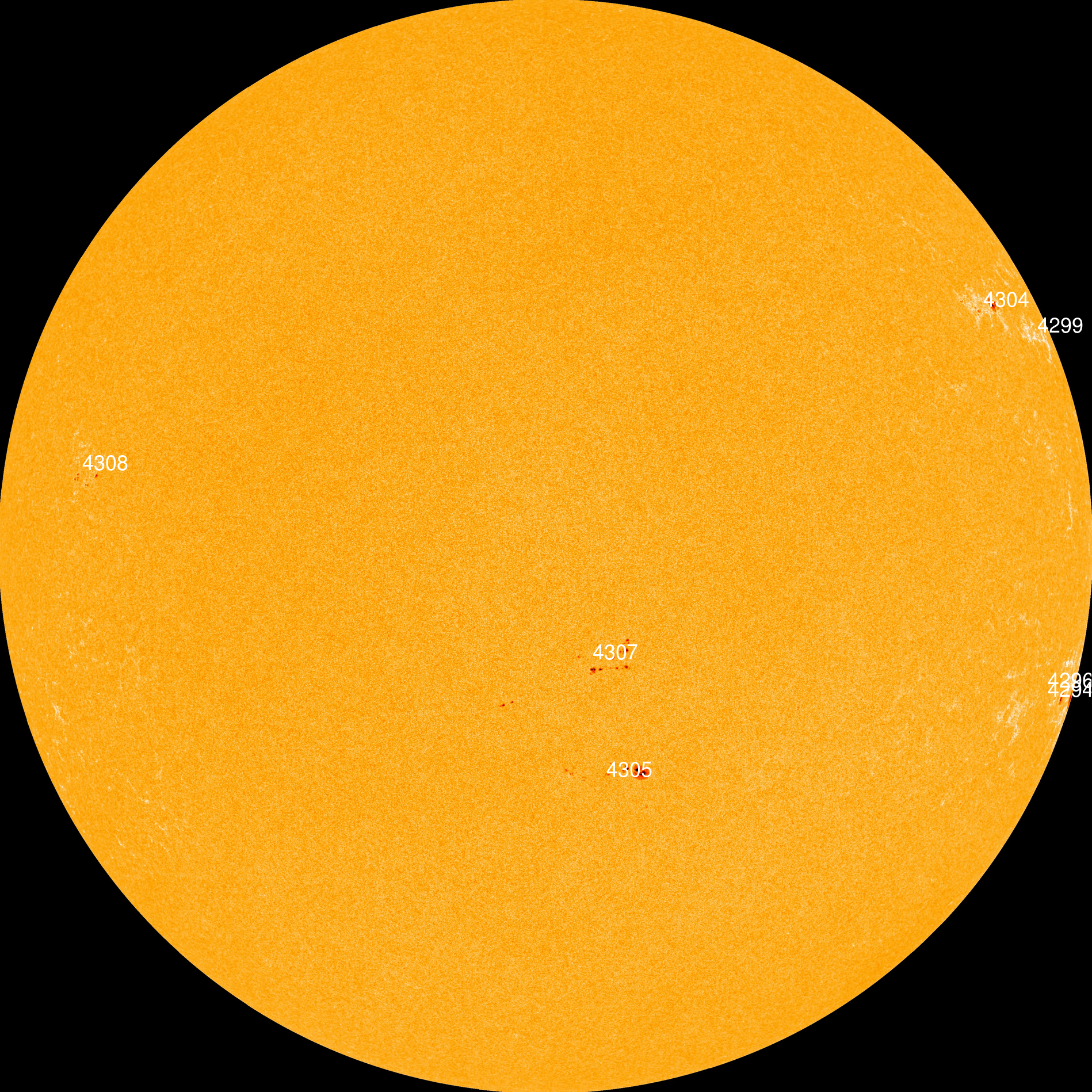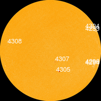 NO SOLAR FLARES TODAY: All five sunspots on the solar disk are stable and quiet. NOAA says the odds of an X-flare today are no more than 1%. The quiet is likely to persist for the next 3 days at least. Solar flare alerts: SMS Text.
