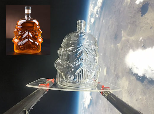 DRINK LIKE A STORM TROOPER: It's the perfect gift for a Star Wars fan--a Storm Trooper Whiskey   Decanter. On Oct. 10th, it hitched a ride onboard   a   cosmic ray research balloon floating 106,066 feet above the Sierra     Nevada mountains of central California: