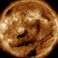 There are no significant coronal holes on the Earthside of the sun.
