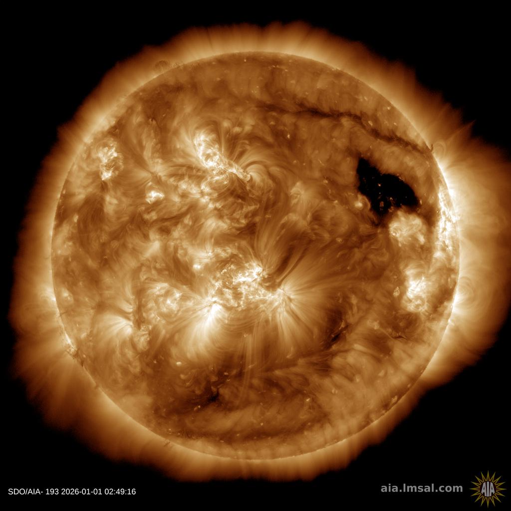 There are no significant equatorial coronal holes on the Earthside of the sun.