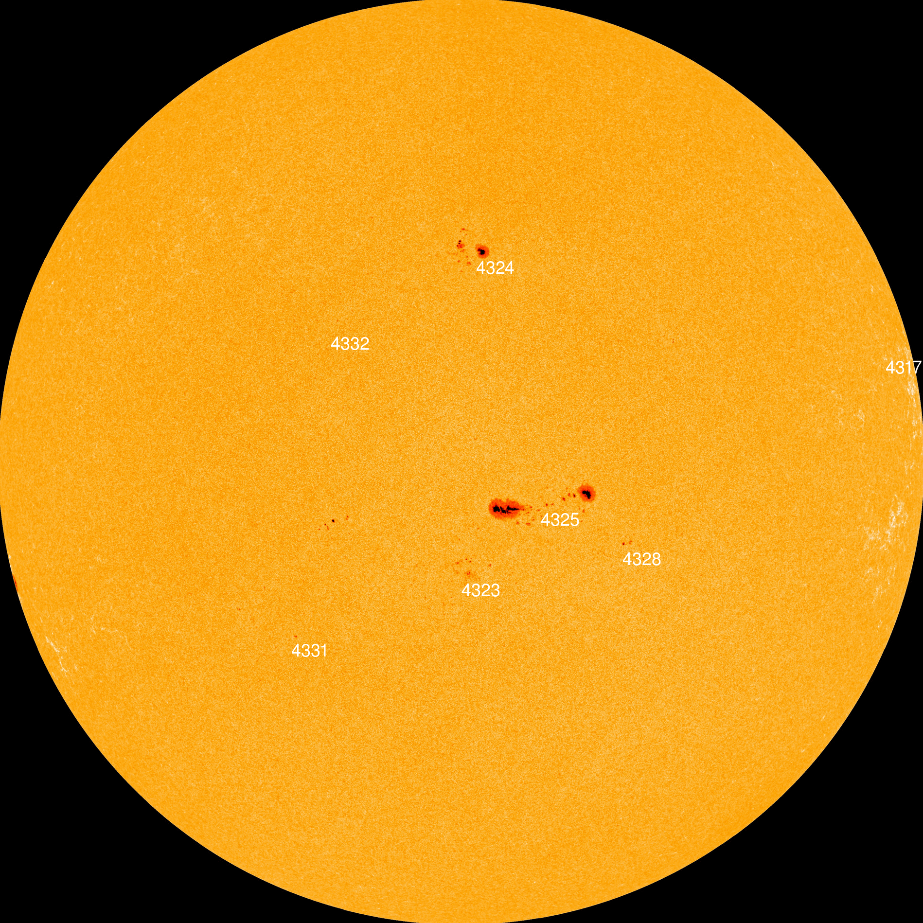 Sunspot 4325 has a delta-class magnetic field that poses a threat for Earth-directed X-class solar flares. Credit: NASA/SDO
