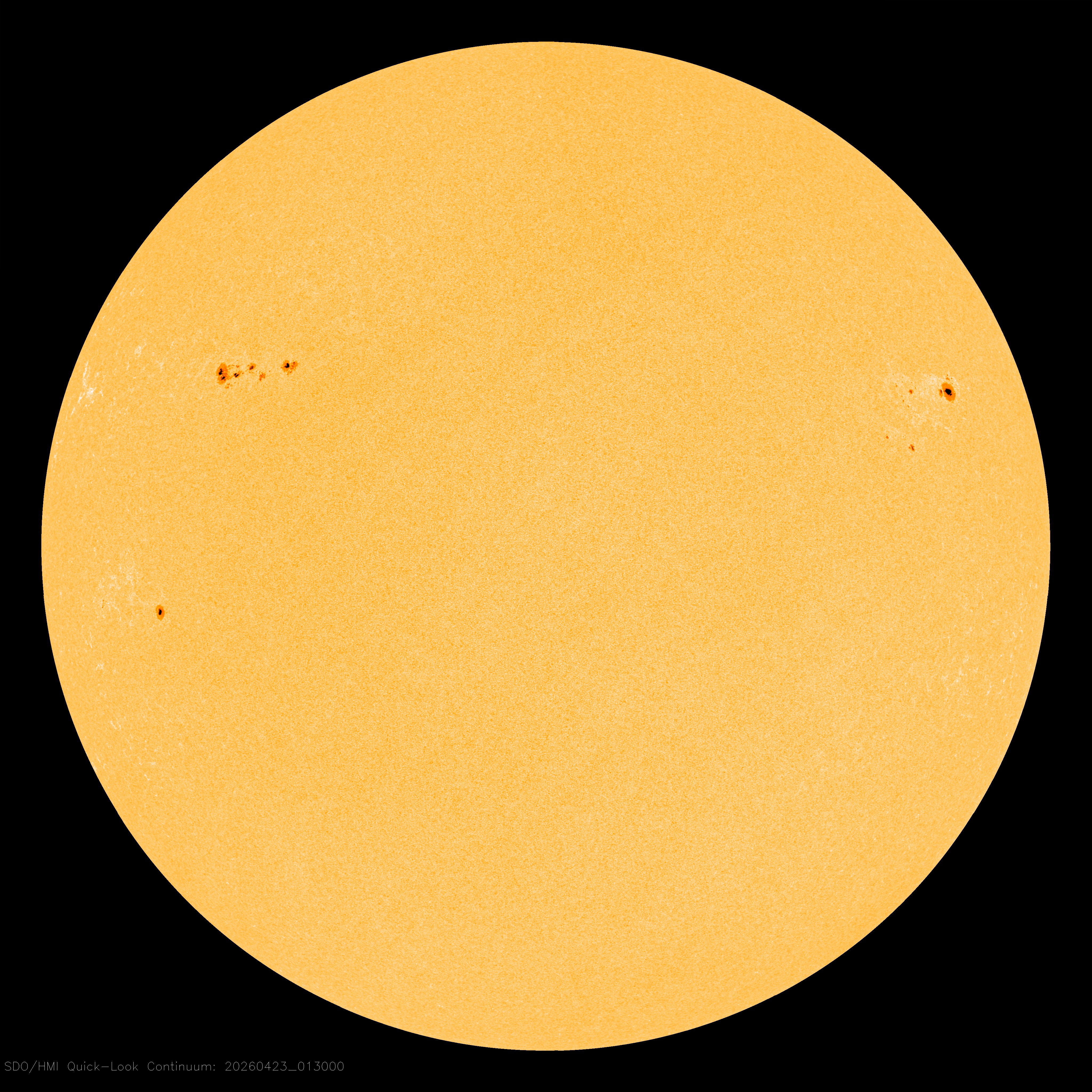 DOUBLE SOLAR FLARE: Two sunspots on opposite sides of the sun erupted in quick succession on April 23rd, producing a double M1-class solar flare: movie. Magnetic teleconnections between the two sunspots caused a chain reaction--also known as a "sympathetic flare." Stay tuned for updates about a possible Earth-directed CME. Solar flare alerts: SMS Text