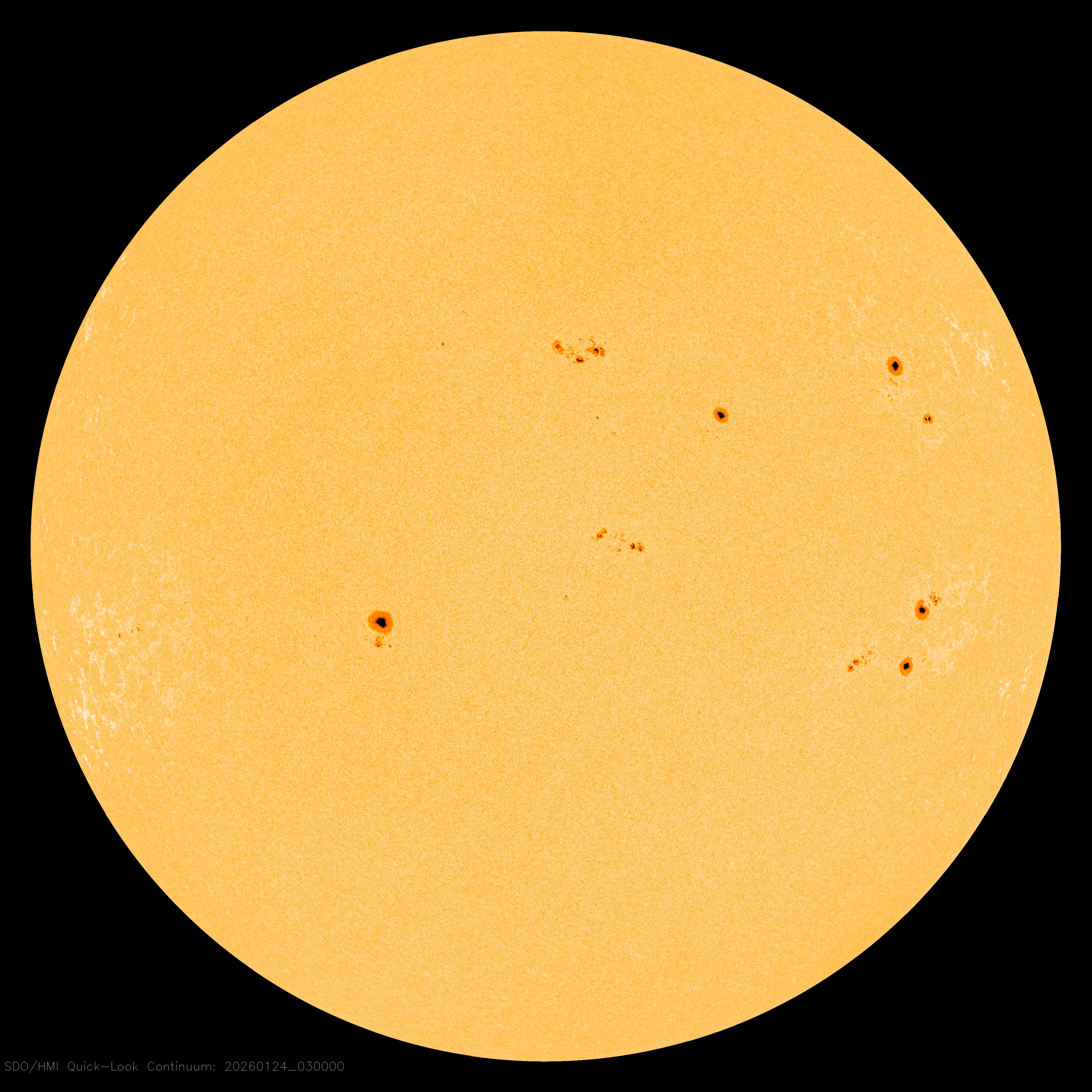 QUIET WEEKEND: The sun is peppered with spots--at least 9 sunspot groups). Nevertheless, solar activity is expected to be low this weekend. All of those sunspots have stable magnetic fields that are unlikely to explode. Solar flare alerts: SMS Text.