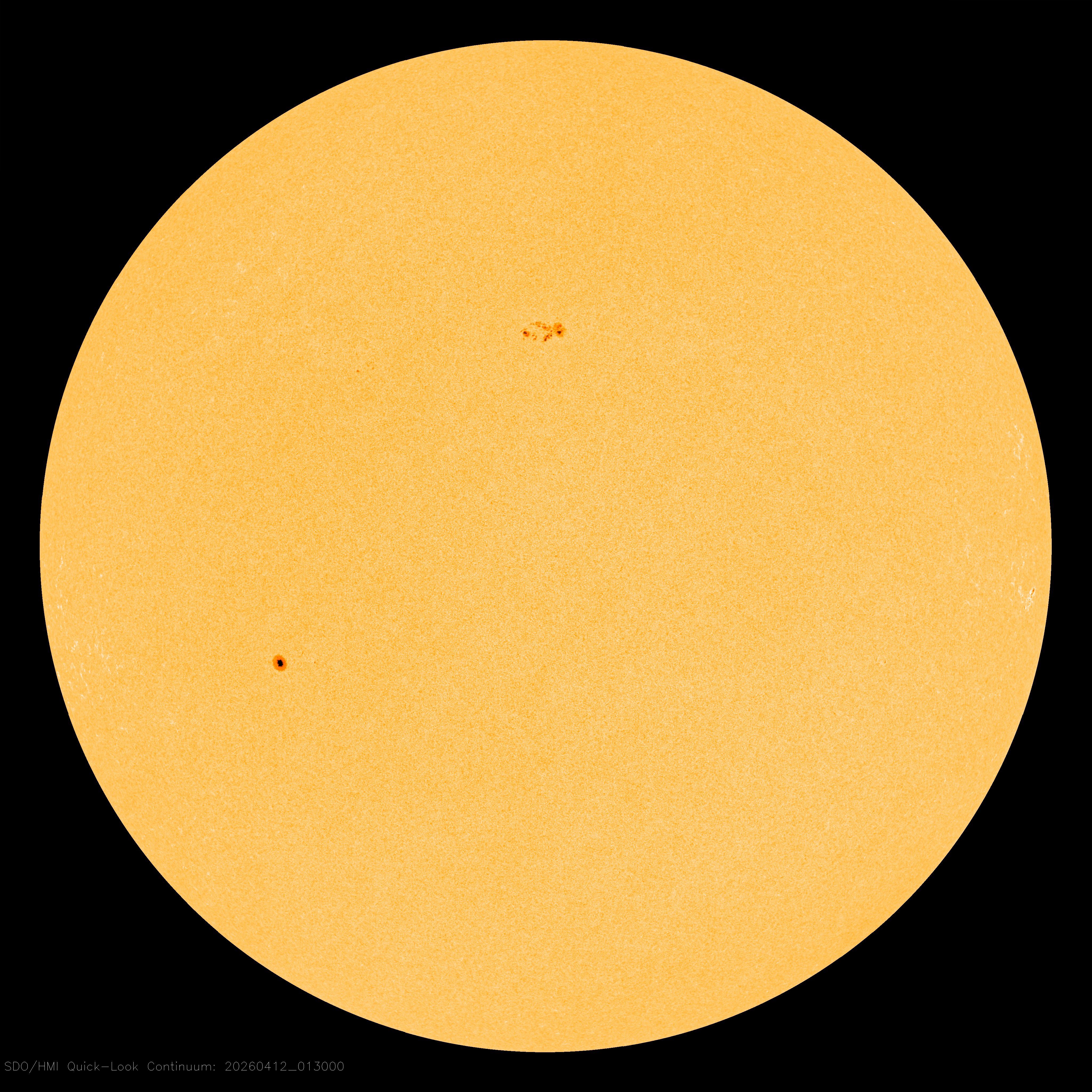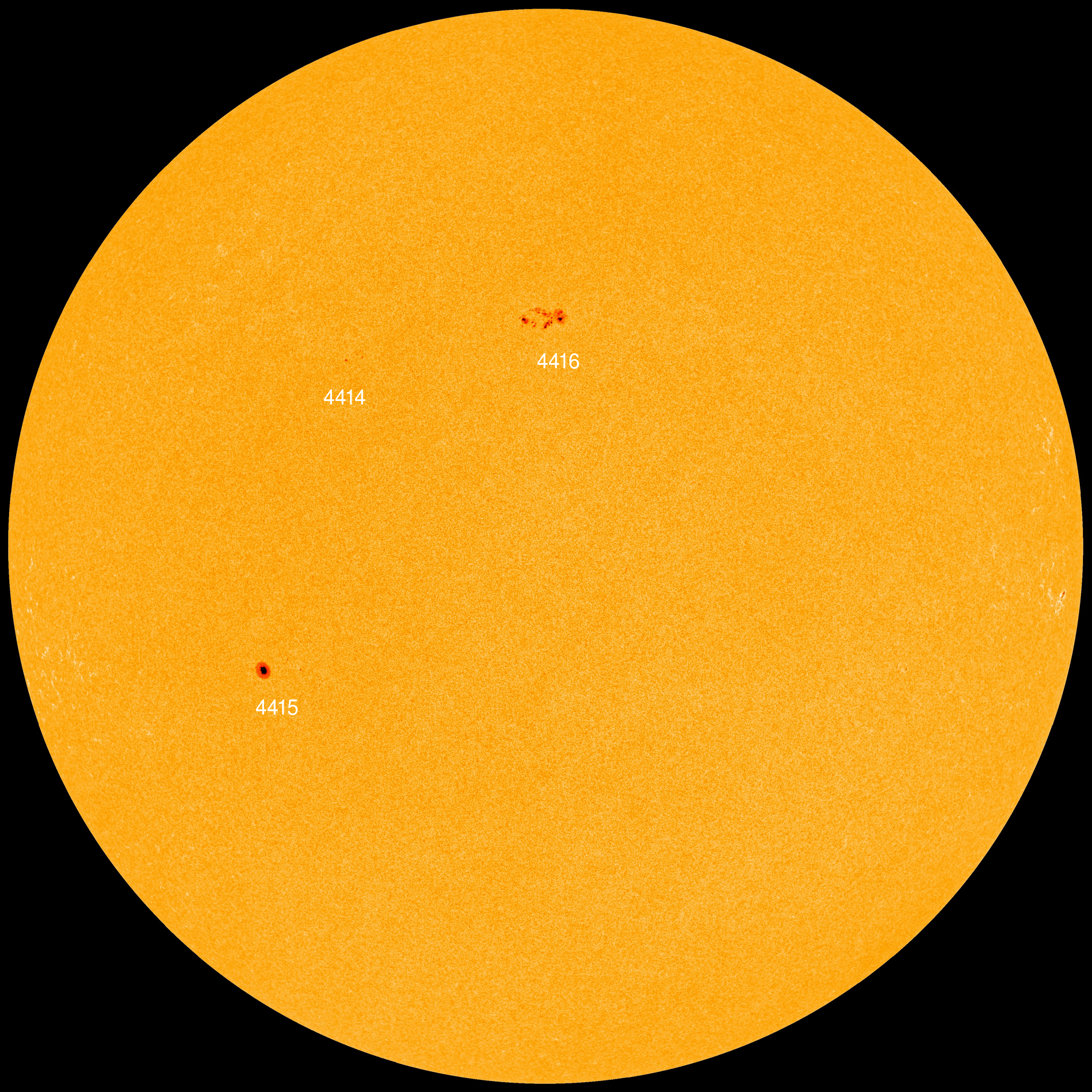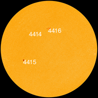 ALL QUIET--FOR NOW: Solar activity is low. None of the three sunspots on the solar disk is currently producing flares. Their magnetic fields are too simple and stable for explosions. However, one sunspot (AR4416) is starting to grow and could pose a threat for Earth-directed solar flares in a day or so if its development continues apace. Free: Spaceweather.com Newsletter