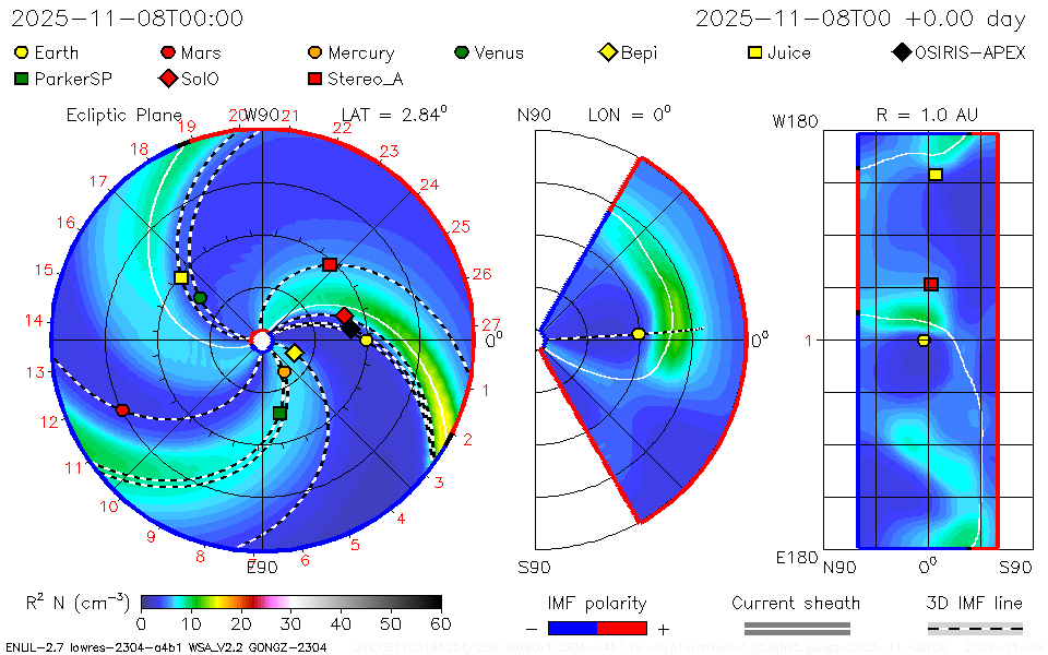 EARTH-DIRECTED X-FLARE AND CME (UPDATED): Active sunspot 4274 exploded again today, Nov. 9th at 0735 UTC, producing an X1.8-class solar flare and a full halo CME. During the flare, shortwave radios in the Indian Ocean briefly stopped working due to atmospheric ionization. A NASA model predicts that the CME will reach Earth around UT midnight on Nov. 11-12. The impact could spark a G2-class geomagnetic storm. CME impact alerts: SMS Text.