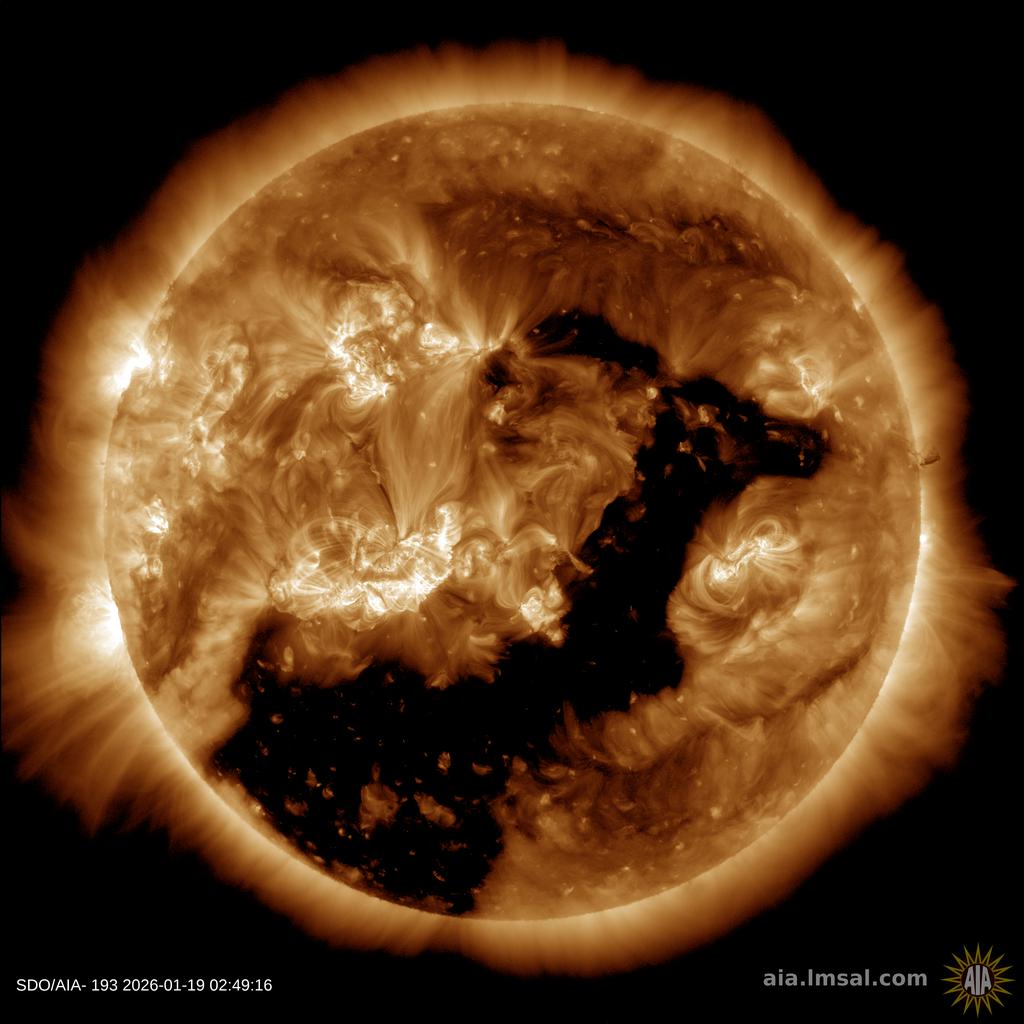Earth is inside a stream of solar wind flowing from this coronal hole.