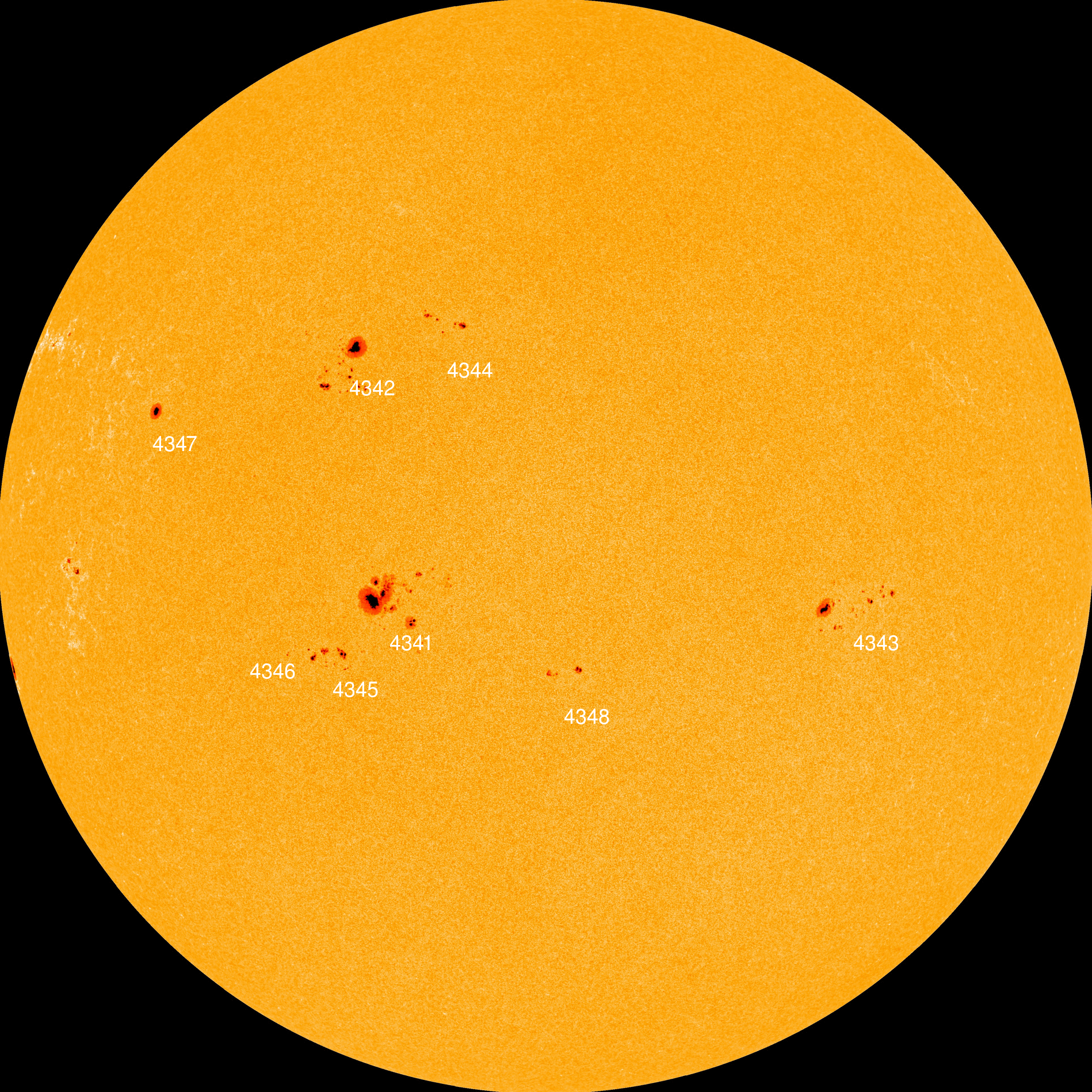 Sunspot 4341 has a 'beta-gamma-delta' magnetic field that poses a threat for X-class solar flares. Credit: NASA/SDO