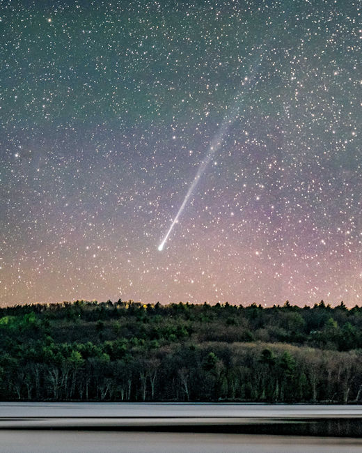 Perez's photo also picked up bands of red and green airglow. These emissions are due to photochemistry in Earth's upper atmosphere, and they show up in most long-exposure photos from dark sky sites. The approach of the New Moon later this week (April 17th) will provide the kind of dark skies required for airglow detection. Many photos of the comet this week will, therefore, have a subtle red and green background. Submit your photos here.