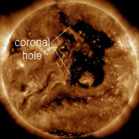Earth is entering a stream of solar wind flowing from this large coronal hole. Minor G1-class geomagnetic storms are possible on April 18th.