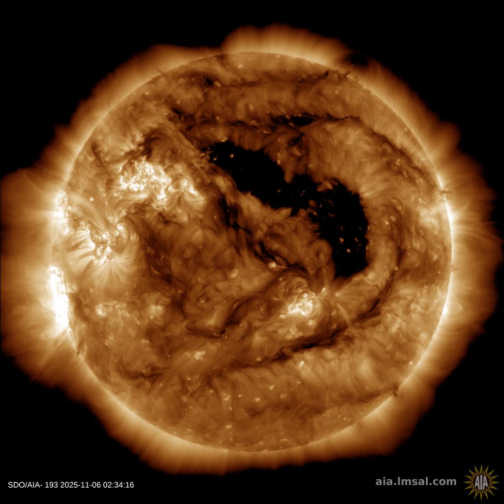 Solar wind flowing from this coronal hole should reach Earth on Nov. 7th.