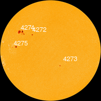 Sunspot 4274 has a 'beta-gamma-delta' magnetic field that harbors energy for X-class solar fares. Credit: NASA/SDO