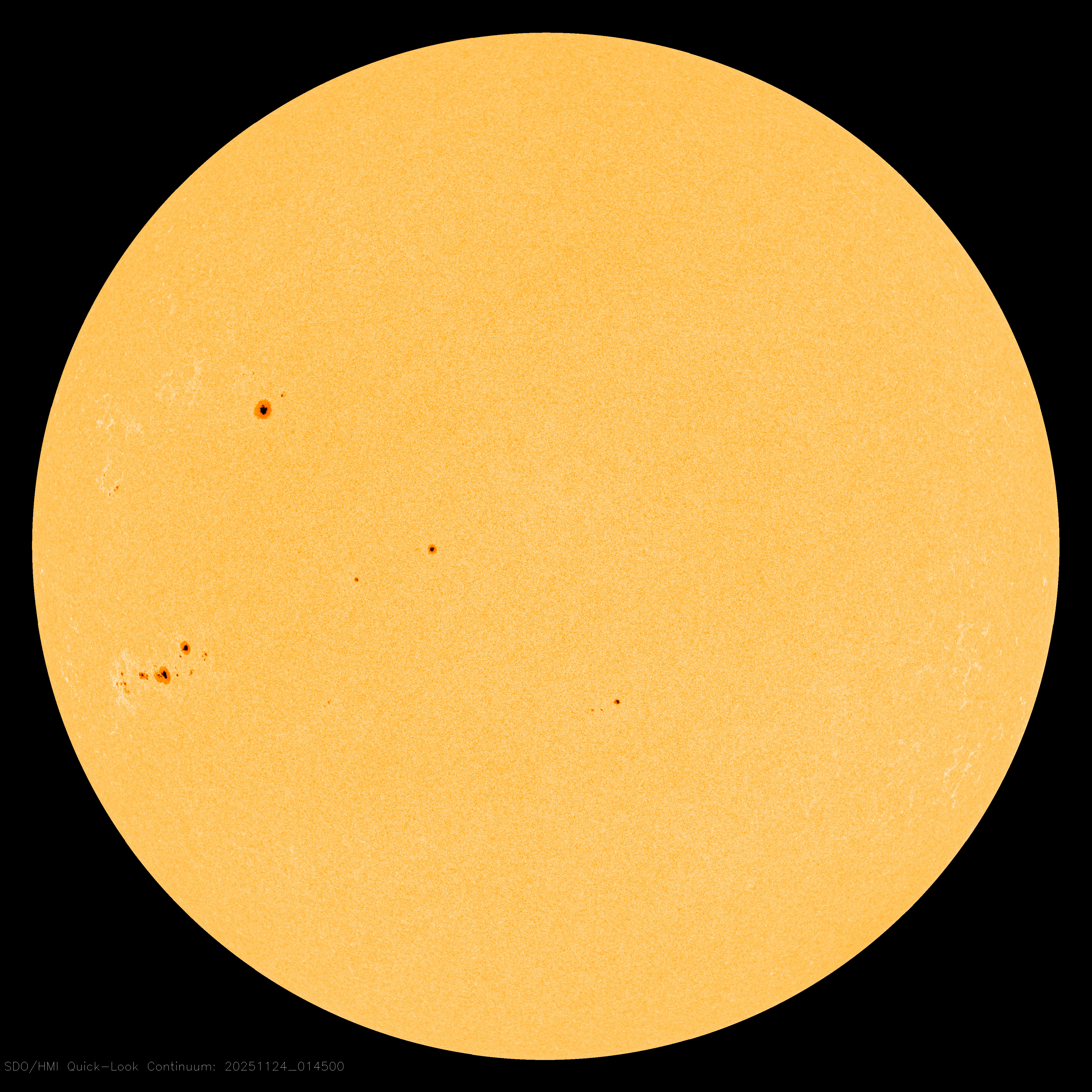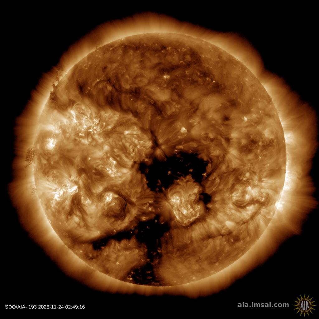 CO-ROTATING INTERACTION REGION: Minor G1-class geomagnetic storms are possible on Nov. 25-26 when a co-rotating interaction region (CIR) is expected to hit Earth's magnetic field. CIRs are transition zones between fast and slow-moving streams of solar wind. They're like mini-CMEs. CIRs contain shock waves and enhanced magnetic fields that do a good job sparking Arctic auroras. Aurora alerts: SMS Text.