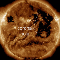 Earth is entering a stream of solar wind flowing from this large coronal hole. Minor G1-class geomagnetic storms are possible on April 19th.