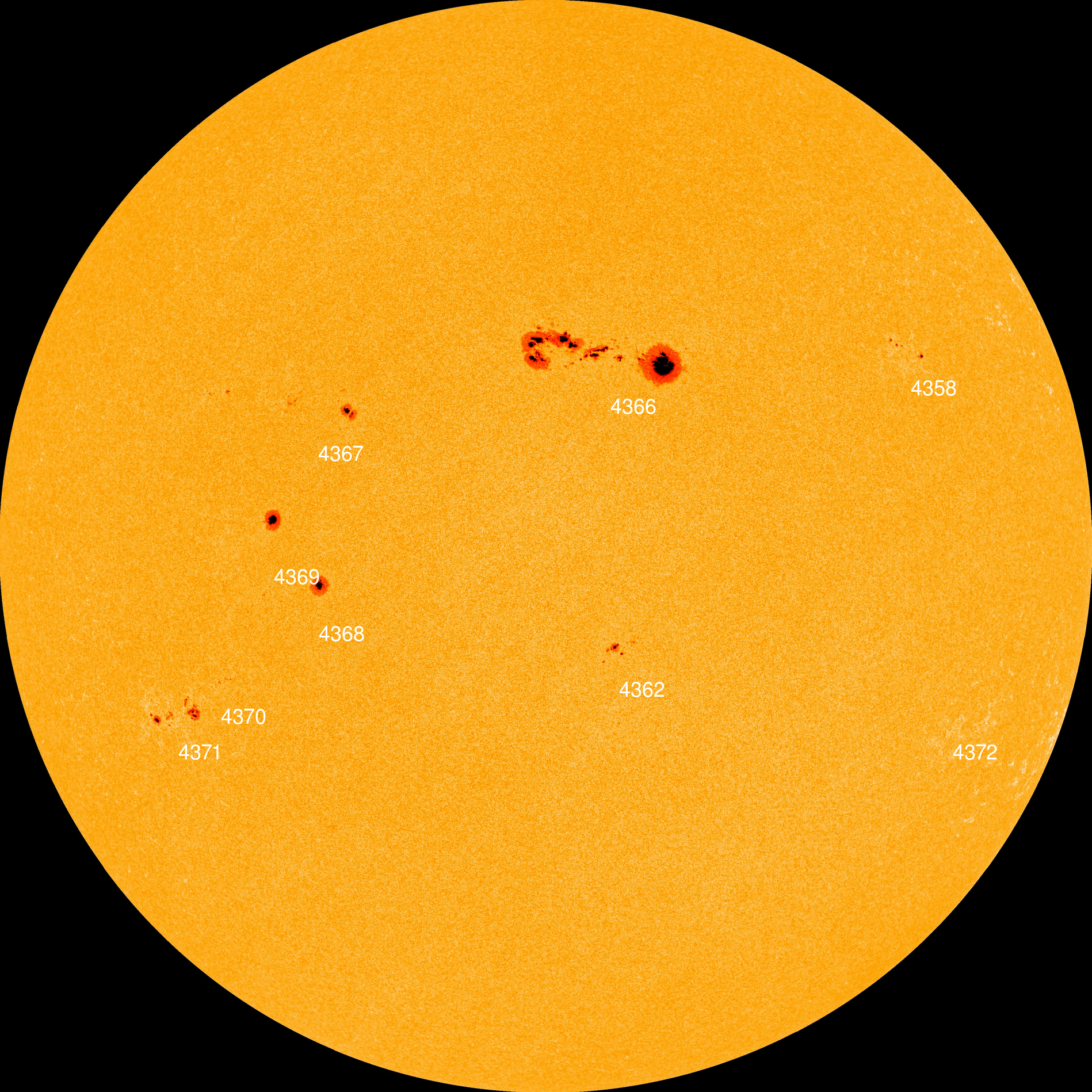 Sunspot 4366 has a 'beta-gamma-delta' magnetic field that poses a continued threat for X-class solar flares. Credit: NASA/SDO