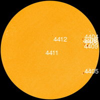 Solar flares are unlikely today.All of these sunspots have stable magnetic fields with a low chance of explosions. Credit: NASA/SDO