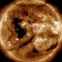 Solar wind flowing from this equatorial coronal hole should reach Earth on Oct. 11-12. Credit: NASA/SDO | more data