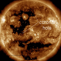 Solar wind flowing from this new coronal hole should reach Earth on March 22-23.