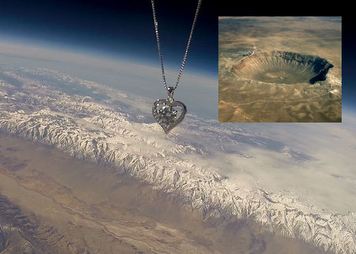 "METEOR CRATER" CRYSTAL PENDANT: Have you heard of Moissanite? It's a very rare mineral discovered in Arizona's Meteor Crater by 19th-century chemist Henri Moissan. At first, he thought it was diamond, but later realized it was even more rare. It came from meteorites! On March 4th, the students of Earth to Sky Calculus launched a Moissanite pendant to the stratosphere onboard a cosmic ray research balloon:
