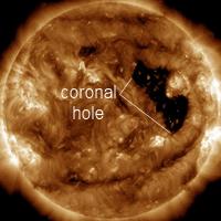 GEOMAGNETIC STORM WATCH (G1): Minor G1-class geomagnetic torms are likely on Oct. 12-13 as Earth enters a high-speed stream of solar wind. The gaseous material is flowing from an equatorial hole in the sun's atmosphere. Aurora alerts: SMS Text.