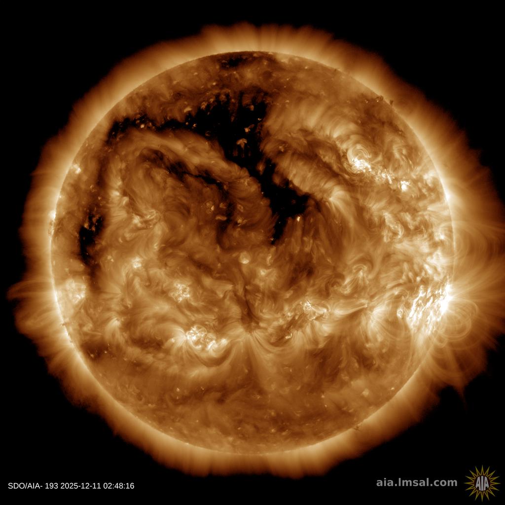 This coronal hole looks like Italy. Solar wind flowing from it could graze Earth on Dec. 14.