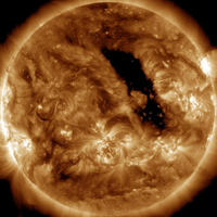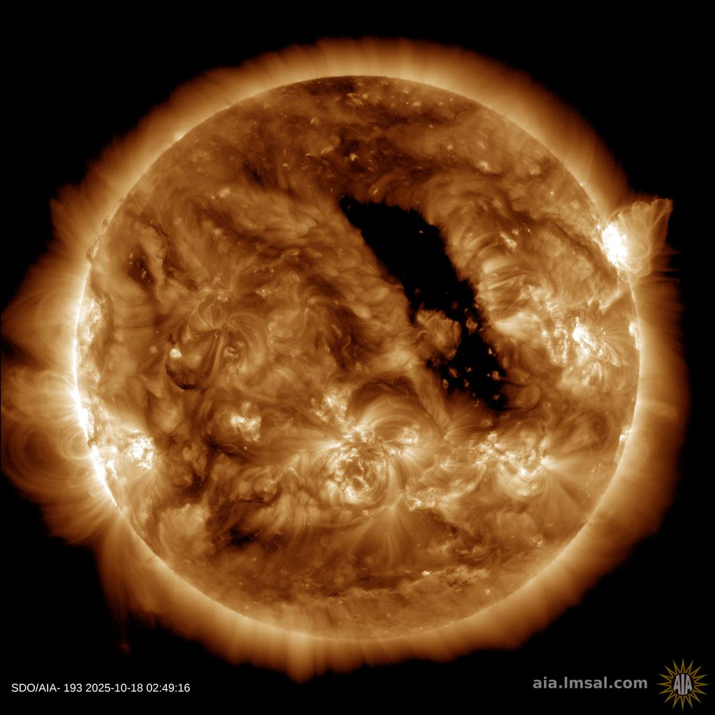 THE SOLAR WIND IS COMING: A high-speed stream of solar wind is approaching Earth. ETA: Oct. 21st. The gaseous material is flowing from a large equatorial hole in the sun's atmosphere, and it could spark a G1-class geomagnetic storm when it arrives. Aurora alerts: SMS Text.
