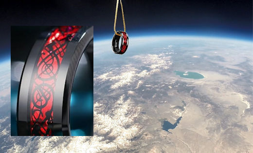 THE HYDROGEN-ALPHA RING FOR MEN: The Earth to Sky Store sells a lot of gifts for women. This one is for men. It's the Hydrogen Alpha Ring, returning from a trip to the stratosphere on Nov. 16th.