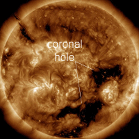 Earth is inside a stream of solar wind flowing from this coronal hole.