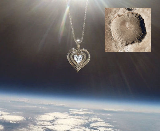 THE METEOR CRATER PENDANT: Have you heard of Moissanite? It's a very rare mineral discovered by 19th-century chemist Henri Moissan in Arizona's Meteor Crater. At first, he thought it was diamond, but later realized it was even more rare. It's a diamond lookalike that, until the 1950s, was found naturally only in meteorites.