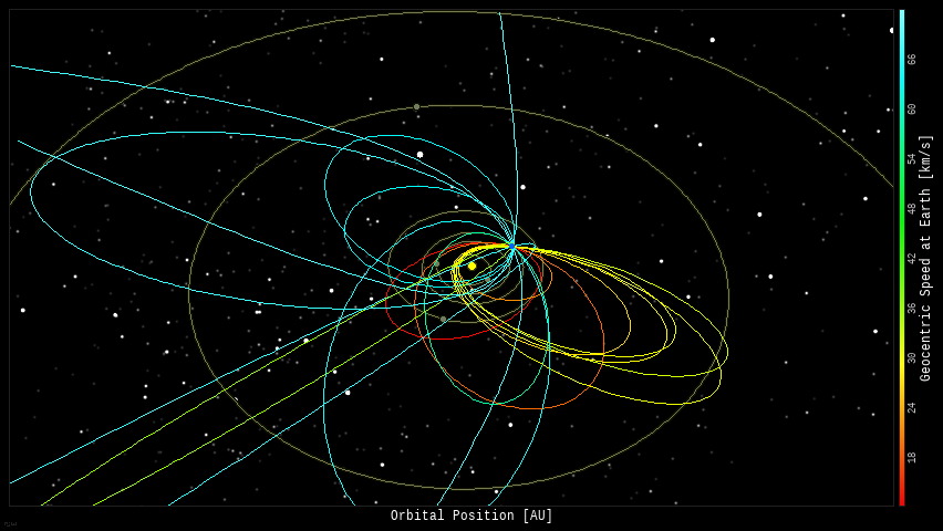 | | | SPACE WEATHER NOAA Forecasts | | Updated at: 2025 Oct 29 2200 UTC FLARE | 0-24 hr | 24-48 hr | CLASS M | 05 % | 05 % | CLASS X | 01 % | 01 % | Geomagnetic Storms: Probabilities for significant disturbances in Earth's magnetic field are given for three activity levels: active, minor storm, severe storm Updated at: 2025 Oct 29 2200 UTC Mid-latitudes | 0-24 hr | 24-48 hr | ACTIVE | 40 % | 35 % | MINOR | 25 % | 15 % | SEVERE | 05 % | 01 % | High latitudes | 0-24 hr | 24-48 hr | ACTIVE | 10 % | 10 % | MINOR | 20 % | 30 % | SEVERE | 65 % | 50 % | | | |  | | | | | | | | | | | This is an AI Free Zone: Text created by Large Language Models is spreading across the Internet. It's well-written, but frequently inaccurate. If you find a mistake on Spaceweather.com, rest assured it was made by a real human being. | | | IS COMET 3I/ATLAS REALLY A SPACESHIP? We’re about to find out. On Oct. 29th, the interstellar object will make its closest approach to the sun. Perihelion is the perfect time to perform a Solar Oberth maneuver or to deploy stealthy probes. If we see any unexpected non-gravitational acceleration, artificial lights, or excess heat (engine activity), it could point to alien tech. Otherwise, 3I/ATLAS is what it appears to be--a comet. Contrary to widespread reports, we can see 3I/ATLAS from Earth, so this will be a legitimate "acid test" of the spaceship hypothesis. Feedback on the Comet 3I/ATLAS story: We have received an unusual number of strongly-worded emails about our coverage of Comet 3I/ATLAS. About half look like this:  Almost as many say, "It's a spaceship. Stop trying to cover it up!" For the record, we think 3I/ATLAS is an exotic comet. But, like it or not, Harvard astronomer Avi Loeb's attention-seeking spacecraft hypothesis is testable. An Oberth maneuver at perihelion would change our minds about this interstellar object. "Pushing garbage" or the scientific method? You decide. THE HALLOWEEN STORMS: Exactly 22 years ago today, one of the most powerful CMEs of the Space Age struck Earth's magnetic field. The impact kickstarted the Halloween Storms. Here's what Spaceweather.com had to say on Oct. 29, 2003: "An extreme geomagnetic storm is in progress following the arrival of a CME at approximately 0630 UT. In the United States, auroras (gallery) have appeared as far south as Georgia, California, New Mexico, Arizona, Texas, and Oklahoma. Right: Not far from Houston, Texas, photographer Christie Ponder snapped this picture of red auroras. "What a wonderful show! Vivid spikes shot up about 15 to 20 degrees above the horizon," she says. The prospects for more auroras tonight are good, mainly because the interplanetary magnetic field (IMF) near Earth has tilted sharply south--a condition that promotes geomagnetic activity. Sky watchers at all latitudes should be alert for auroras after local nightfall. Meanwhile, another powerful solar flare (X11-class) has erupted from giant sunspot 486. Stay tuned for details." Unknown to forecasters at the time, active sunspot 486 would unleash even stronger solar flares in the days ahead, sparking a truly historic storm. Come back tomorrow to see what happened next. Realtime Space Weather Photo Gallery Free: Spaceweather.com Newsletter VOYAGER GOLDEN RECORD: This is a must-have Christmas ornament for space fans: The Voyager Golden Record. On Oct. 31, 2023, the students of Earth to Sky Calculus launched it to the stratosphere onboard a cosmic ray research balloon:  You can have it for $99.95. The 3-inch aluminum disk is imprinted with instructions for extraterrestrials, telling ET how to play the sounds of Earth. The original phonograph records are sailing through interstellar space onboard NASA's Voyager probes. Having touched the edge of space, this is the closest thing on Earth to an actual Golden Record. The ornament comes with extra materials decoding the markings on the disk. The students are selling space ornaments to support their cosmic ray ballooning program. Each one comes with a greeting card showing the ornament in flight and telling the story of its journey to the edge of space. Far Out Gifts: Earth to Sky Store All sales support hands-on STEM education Realtime Aurora Photo Gallery Free: Spaceweather.com Newsletter Every night, a network of NASA all-sky cameras scans the skies above the United States for meteoritic fireballs. Automated software maintained by NASA's Meteoroid Environment Office calculates their orbits, velocity, penetration depth in Earth's atmosphere and many other characteristics. Daily results are presented here on Spaceweather.com. On Oct 29, 2025, the network reported 18 fireballs. (10 sporadics, 5 Southern Taurids, 3 Orionids) In this diagram of the inner solar system, all of the fireball orbits intersect at a single point--Earth. The orbits are color-coded by velocity, from slow (red) to fast (blue). [Larger image] [movies] Potentially Hazardous Asteroids ( PHAs) are space rocks larger than approximately 100m that can come closer to Earth than 0.05 AU. None of the known PHAs is on a collision course with our planet, although astronomers are finding new ones all the time. On October 29, 2025 there were 2349 potentially hazardous asteroids.  | Recent & Upcoming Earth-asteroid encounters: | Asteroid | Date(UT) | Miss Distance | Velocity (km/s) | Diameter (m) | | 2025 UL1 | 2025-Oct-24 | 9.1 LD | 14.1 | 30 | | 2025 UE7 | 2025-Oct-24 | 2.4 LD | 6.6 | 8 | | 2025 UT6 | 2025-Oct-24 | 3 LD | 15 | 39 | | 2025 UY7 | 2025-Oct-24 | 7.3 LD | 13.1 | 13 | | 2025 UT5 | 2025-Oct-24 | 1.6 LD | 2.9 | 15 | | 2025 TX2 | 2025-Oct-24 | 6.4 LD | 6.8 | 26 | | 2025 UG4 | 2025-Oct-25 | 16.4 LD | 25.8 | 40 | | 2012 TP231 | 2025-Oct-25 | 15.2 LD | 6.7 | 37 | | 2025 UX1 | 2025-Oct-25 | 3.6 LD | 14.4 | 10 | | 2025 UW5 | 2025-Oct-25 | 1.5 LD | 14.2 | 11 | | 2025 UP2 | 2025-Oct-25 | 5.2 LD | 3.1 | 6 | | 2025 US5 | 2025-Oct-25 | 0.6 LD | 10.2 | 3 | | 2025 UD3 | 2025-Oct-25 | 1.9 LD | 6.3 | 7 | | 2025 UU | 2025-Oct-25 | 5 LD | 12.6 | 26 | 