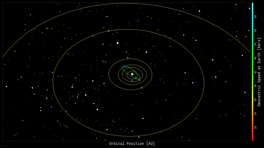 | | | SPACE WEATHER NOAA Forecasts | | Updated at: 2026 Jan 24 2200 UTC FLARE | 0-24 hr | 24-48 hr | CLASS M | 55 % | 55 % | CLASS X | 10 % | 10 % | Geomagnetic Storms: Probabilities for significant disturbances in Earth's magnetic field are given for three activity levels: active, minor storm, severe storm Updated at: 2026 Jan 24 2200 UTC Mid-latitudes | 0-24 hr | 24-48 hr | ACTIVE | 20 % | 10 % | MINOR | 05 % | 01 % | SEVERE | 01 % | 01 % | High latitudes | 0-24 hr | 24-48 hr | ACTIVE | 15 % | 20 % | MINOR | 25 % | 20 % | SEVERE | 25 % | 10 % | | | |  | | | | | | | | | | | This is an AI Free Zone: Text created by Large Language Models is spreading across the Internet. It's well-written, but frequently inaccurate. If you find a mistake on Spaceweather.com, rest assured it was made by a real human being. | | | QUIET WEEKEND: The sun is peppered with spots--at least 9 sunspot groups). Nevertheless, solar activity is expected to be low this weekend. All of those sunspots have stable magnetic fields that are unlikely to explode. Solar flare alerts: SMS Text. A RARE GATHERING OF SOLAR SYSTEM OBJECTS: All month long, NOAA and SOHO coronagraphs have been watching a very rare event. Mars, Venus and Mercury have gathered near the sun for a multi-planet solar conjunction. On Jan. 18th, "rare" became "unprecedented" when the Moon joined the planets and eclipsed Mars. Click to set the scene in motion:  This view is unprecedented because the CCOR-1 coronagraph on NOAA's GOES-19 satellite is the first space-based coronagraph to photograph the Moon. GOES-19 orbits Earth, so it sees the New Moon once a month when it passes between the Earth and sun. (Yes, that Moon is New. It only looks full because it is illuminated by sunlight reflected from Earth--aka Earthshine.) In the movie, the New Moon passes directly in front of Mars before it joins the sun behind the coronagraph's occulting disk. On the left, a sungrazing comet plunges toward the sun. It disintegrated soon after the movie's end. This is indeed a rare sequence of events. We didn't report this movie until now because our attention was distracted. Just before the Moon entered the coronagraph's field of view on Jan. 18th, a tremendous X2-class solar flare erupted and hurled a superfast CME toward Earth. The rest of the week was spent covering the subsequent severe geomagnetic storm. Better late than never! Realtime Space Weather Photo Gallery Free: Spaceweather.com Newsletter THE LOVE PUZZLE FOR VALENTINE'S DAY: Valentine’s Day is coming. Do you have a truly far-out gift? Consider the the Love Puzzle. On Jan. 15th, it flew to the stratosphere onboard an Earth to Sky cosmic ray research balloon:  You can have it for $91.95. This acrylic puzzle piece is a love note: "Thank you for being such an important piece of my life," the inscription says. It's a durable reminder that you fit together. The Love Puzzle comes with a unique gift card showing the keepsake at the top of Earth's atmosphere. Earth to Sky Valentine's gifts have flown above 99.7% of Earth's atmosphere, experiencing space-like blasts of cosmic rays, extreme cold, and a wild ride parachuting back to Earth after the balloon explodes. Even Amazon doesn't carry items this far out. And, best of all, all sales support student science projects and STEM education. Far Out Gifts: Earth to Sky Store All sales support hands-on STEM education Realtime Aurora Photo Gallery Free: Spaceweather.com Newsletter Every night, a network of NASA all-sky cameras scans the skies above the United States for meteoritic fireballs. Automated software maintained by NASA's Meteoroid Environment Office calculates their orbits, velocity, penetration depth in Earth's atmosphere and many other characteristics. Daily results are presented here on Spaceweather.com. On Jan. 24 2026, the network reported 2 fireballs. (2 sporadics) In this diagram of the inner solar system, all of the fireball orbits intersect at a single point--Earth. The orbits are color-coded by velocity, from slow (red) to fast (blue). [Larger image] [movies] Potentially Hazardous Asteroids ( PHAs) are space rocks larger than approximately 100m that can come closer to Earth than 0.05 AU. None of the known PHAs is on a collision course with our planet, although astronomers are finding new ones all the time. On January 24, 2026 there were 2349 potentially hazardous asteroids.  | Recent & Upcoming Earth-asteroid encounters: | Asteroid | Date(UT) | Miss Distance | Velocity (km/s) | Diameter (m) | | 2026 BT | 2026-Jan-19 | 2.9 LD | 6.3 | 6 | | 2026 BL | 2026-Jan-19 | 3.1 LD | 4.1 | 4 | | 2026 BH1 | 2026-Jan-19 | 8.9 LD | 8.4 | 12 | | 2026 BM2 | 2026-Jan-19 | 4.4 LD | 9.1 | 7 | | 2025 YX7 | 2026-Jan-20 | 19.5 LD | 11.5 | 77 | | 2026 AV4 | 2026-Jan-20 | 7.2 LD | 11 | 11 | | 2026 AK | 2026-Jan-20 | 11.5 LD | 14.9 | 64 | | 2026 AL | 2026-Jan-21 | 17.1 LD | 4.9 | 35 | | 2026 AW4 | 2026-Jan-21 | 16.4 LD | 17.5 | 35 | | 2026 BV3 | 2026-Jan-21 | 1 LD | 12.7 | 6 | | 2026 AG | 2026-Jan-21 | 10.8 LD | 9.1 | 27 | | 2026 BQ4 | 2026-Jan-22 | 11.7 LD | 12 | 48 | | 2026 BF2 | 2026-Jan-22 | 12.1 LD | 11.8 | 23 | | 2026 BF | 2026-Jan-22 | 12.1 LD | 9.3 | 29 | | 2019 LZ4 | 2026-Jan-22 | 17.9 LD | 12 | 45 | | 2026 AY3 | 2026-Jan-22 | 19.6 LD | 8.2 | 57 | | 2026 BX | 2026-Jan-23 | 13.3 LD | 6 | 28 | | 2026 BL3 | 2026-Jan-23 | 10.8 LD | 9.7 | 20 | | 2026 BP | 2026-Jan-23 | 4.9 LD | 12.2 | 20 | | 2026 BG2 | 2026-Jan-24 | 6.6 LD | 5.4 | 23 | | 2026 BG | 2026-Jan-25 | 5.7 LD | 5.4 | 13 | | 2026 BB4 | 2026-Jan-26 | 3.5 LD | 11.7 | 17 | | 2026 BJ1 | 2026-Jan-26 | 12.9 LD | 20.9 | 70 | | 2025 YR1 | 2026-Jan-27 | 19.5 LD | 4.1 | 31 | | 2026 AS2 | 2026-Jan-29 | 6 LD | 13.4 | 55 | | 2022 AG | 2026-Jan-29 | 13.6 LD | 5.3 | 34 | | 2020 GE | 2026-Jan-29 | 16.2 LD | 1.2 | 8 | | 2026 AG2 | 2026-Jan-29 | 6.9 LD | 12 | 34 | | 2026 BK | 2026-Jan-30 | 9.7 LD | 2.2 | 19 | | 2023 RX1 | 2026-Jan-31 | 8.8 LD | 1.2 | 3 | | 2026 BF1 | 2026-Jan-31 | 11.1 LD | 3.9 | 12 | | 2025 YQ12 | 2026-Jan-31 | 12 LD