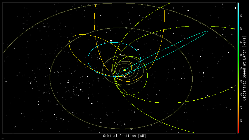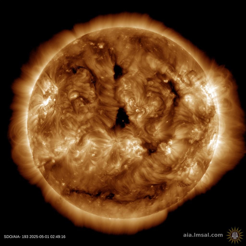 | | | Switch to: Europe, USA, New Zealand, Antarctica Credit: NOAA/Ovation Planetary K-index Now: Kp= 4.67 unsettled 24-hr max: Kp= 4.67 unsettled explanation | more data Interplanetary Mag. Field Btotal: 14.69 nT Bz: -3.93 nT south more data: ACE, DSCOVR Updated: Today at 1146 UT Coronal Holes: 01 May 25  There are no large equatorial coronal holes on the Earthside of the sun. Credit: NASA/SDO | more data Polar Stratospheric Clouds Colorful Type II polar stratospheric clouds (PSC) form when the temperature in the stratosphere drops to a staggeringly low -85C. NASA's MERRA-2 climate model predicts when the air up there is cold enough:  On May 01, 2025, the Arctic stratosphere is much too hot for polar stratospheric clouds. | more data. Noctilucent Clouds The southern season for noctilucent clouds (NLCs) is finished. The first clouds were detected over Antarctica on Nov. 19, 2024, and they vanished again on Feb. 21, 2025. The action will shift to the north pole in late May 2025. Until then, the map will remain blank.  Updated: Feb. 21, 2025 An instrument onboard NOAA 21 (OMPS LP) is able to detect NLCs (also known as "polar mesospheric clouds" or PMCs). In the daily map, above, each dot is a detected cloud. As the season progresses, these dots will multiply in number and shift in hue from blue to red as the brightness of the clouds intensifies. SPACE WEATHER NOAA Forecasts | | Updated at: 2025 May 01 2200 UTC FLARE | 0-24 hr | 24-48 hr | CLASS M | 50 % | 45 % | CLASS X | 10 % | 10 % | Geomagnetic Storms: Probabilities for significant disturbances in Earth's magnetic field are given for three activity levels: active, minor storm, severe storm Updated at: 2025 May 01 2200 UTC Mid-latitudes | 0-24 hr | 24-48 hr | ACTIVE | 35 % | 30 % | MINOR | 25 % | 10 % | SEVERE | 05 % | 01 % | High latitudes | 0-24 hr | 24-48 hr | ACTIVE | 15 % | 15 % | MINOR | 30 % | 30 % | SEVERE | 55 % | 40 % | | | |  | | | | | | | | | | | This is an AI Free Zone: Text created by Large Language Models is spreading across the Internet. It's well-written, but frequently inaccurate. If you find a mistake on Spaceweather.com, rest assured it was made by a real human being. | | | A LARGE SUNSPOT IS TURNING TOWARD EARTH: Sunspot 4079 stretches more than 140,000 km from end to end and has two dark cores each large enough to swallow Earth. These dimensions make it an easy target for backyard solar telescopes or even simple projectors. It is also crackling with M-class solar flares. Solar flare alerts: SMS Text A "HIGH INTEREST" REENTRY: In 1972, the Soviet Union's Kosmos 482 spacecraft was supposed to land on Venus. More than 50 years later, it's returning to Earth instead. Touchdown is expected on May 10th, give or take a few days. "This will not be your standard reentry," says satellite analyst Marco Langbroek, who has been tracking the object for years. "The Kosmos 482 Descent Craft was designed to survive the dense atmosphere of Venus. It will therefore likely survive reentry into the Earth’s atmosphere intact and make a crash landing. This will therefore be a high-interest reentry."  Above: A museum replica of Venera 8, a similar probe launched just days before Kosmos 482. Kosmos 482 was part of the Soviet Union's successful Venera program to explore Venus. Between 1961 and 1984, thirteen Soviet probes successfully entered Venus's atmosphere, with ten landing on the planet's surface. Kosmos 482, however, never fully escaped Earth. After it was launched from the Baikonur Cosmodrome on March 31, 1972, the upper stage of its Molniya rocket shut down prematurely, leaving it in a 206 x 9802 kilometer orbit that has been decaying ever since. "With an orbital inclination of 52 degrees, the Kosmos 482 Descent Craft could come down anywhere between 52 degrees north and 52 degrees south latitude," says Langbroek. "This includes much of south and mid-latitude Europe and Asia, as well as the Americas, Africa and Australia." Statistically, an ocean landing is the most likely outcome.  Above: A picture of Venus from Kosmos 482's sister craft Venera 13 [more] The probe was designed to parachute to the surface of Venus. However, it is very unlikely that the parachute system will work after more than 50 years in space, so this will be a crash landing. How bad will it be? Many details of the descent craft have been lost to history. Langbroek believes it is about 1 meter in diameter with a mass of ~495 kg. It won't do major damage, but you wouldn't want to be standing where it lands. For updates and improved re-entry predictions, stay tuned to Langbroek's blog. And welcome home, Kosmos 482! Realtime Space Weather Photo Gallery Free: Spaceweather.com Newsletter "BEST WIFE EVER" TEA CUP: Tell your wife what you think of her with the "Best Wife Ever" Tea Cup from Space. On March 21, 2025, the students of Earth to Sky Calculus launched it to the stratosphere onboard a cosmic ray research balloon:  You can have it for $134.95. The crystal glass cup is decorated with 3D pink and purple daisies. There's also a matching teaspoon! This romantic birthday, anniversary or Mother's Day gift comes with a greeting card showing the cup in flight and telling the story of its journey to the stratosphere. See also: The High Tea Cup. Far Out Gifts: Earth to Sky Store All sales support hands-on STEM education Realtime Aurora Photo Gallery Free: Spaceweather.com Newsletter Realtime Comet Photo Gallery Free: Spaceweather.com Newsletter Every night, a network of NASA all-sky cameras scans the skies above the United States for meteoritic fireballs. Automated software maintained by NASA's Meteoroid Environment Office calculates their orbits, velocity, penetration depth in Earth's atmosphere and many other characteristics. Daily results are presented here on Spaceweather.com. On Apr 30, 2025, the network reported 7 fireballs. (5 sporadics, 1 eta Aquarid, 1 April rho Cygnid) In this diagram of the inner solar system, all of the fireball orbits intersect at a single 