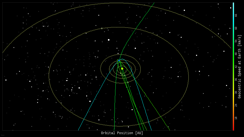 calculates their orbits, velocity, penetration depth