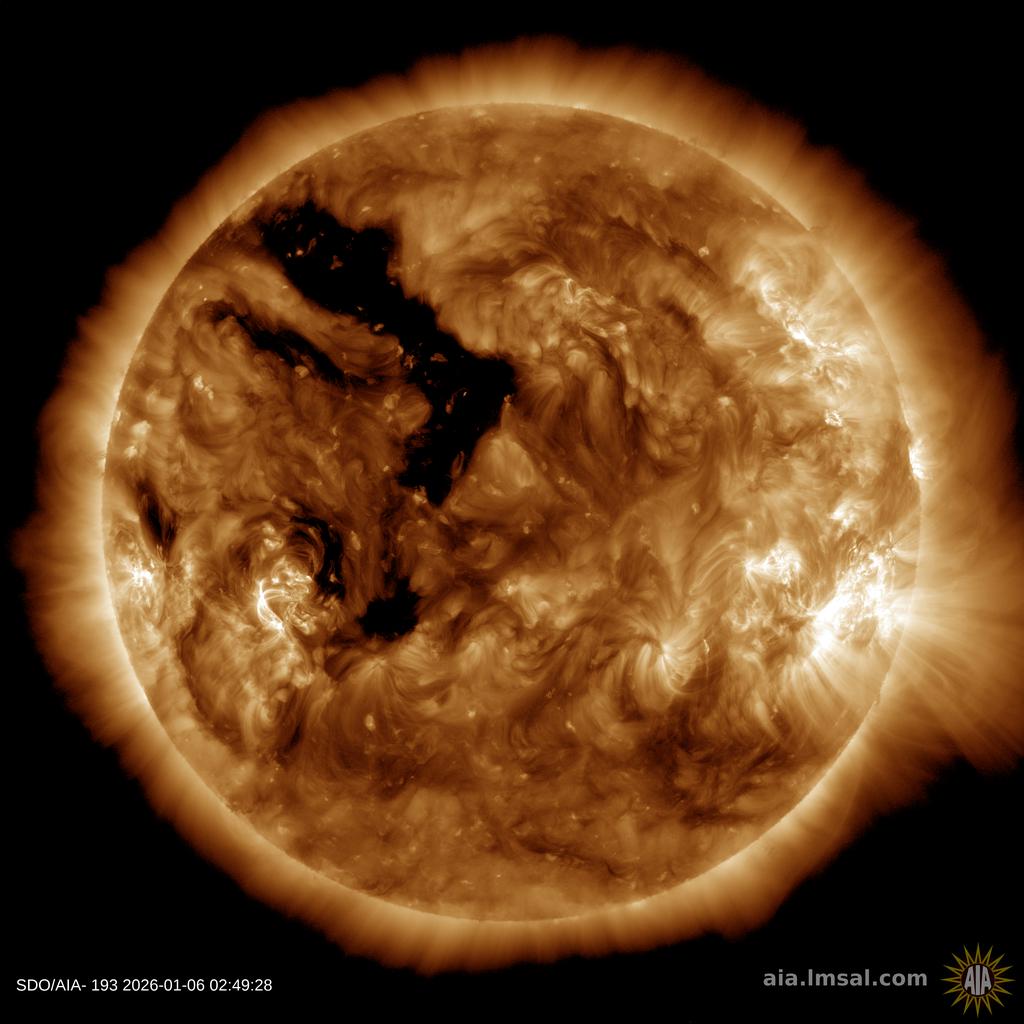 GEOMAGNETIC STORM WATCH (G1): Minor G1-class geomagnetic storms re possible on Jan. 9th when a co-rotating interaction region (CIR) is expected to hit Earth. CIRs are plasma pile-ups between fast and slow-moving streams of solar wind. They act like mini-CMEs, often doing a good job of sparking Arctic auroras. Aurora alerts: SMS Text