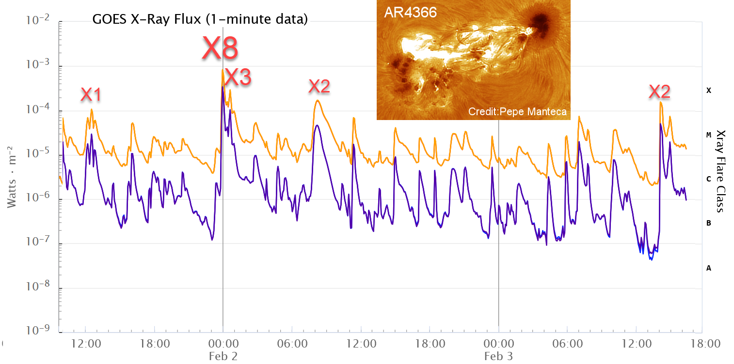 AR4366 is currently facing Earth, and it poses a threat for X-class solar flares. Such flares can cause shortwave radio blackouts and, if they hurl a CME in our direction, strong-to-extreme geomagnetic storms. Solar flare alerts: SMS Text