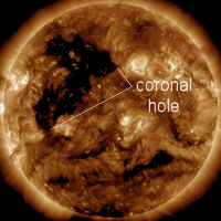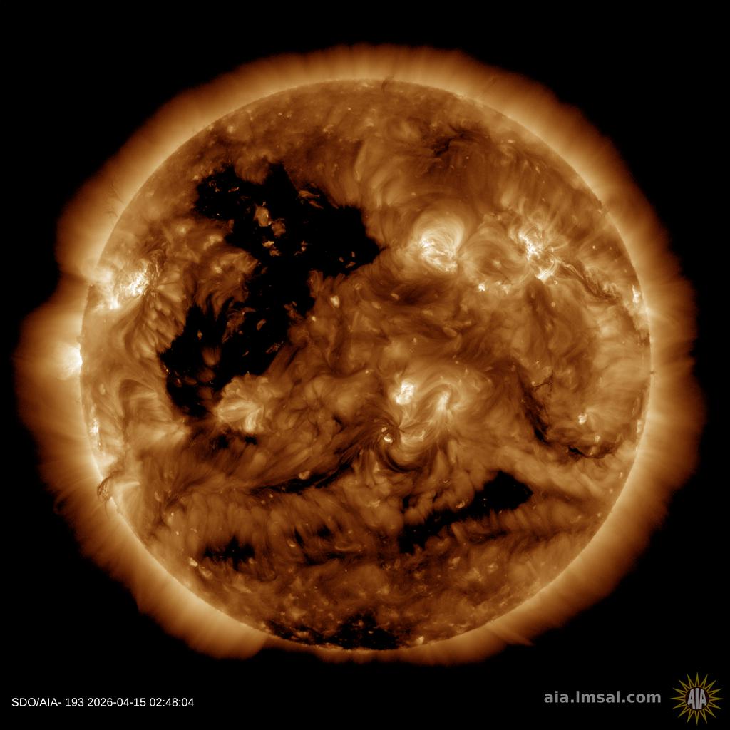 A HOLE IN THE SUN'S ATMOSPHERE: A large hole has opened in the sun's atmosphere and it is turning toward Earth. Solar wind emerging from this coronal hole should reach our planet on April 19-20, potentially sparking G1-class geomagnetic storms. Free: Spaceweather.com Newsletter