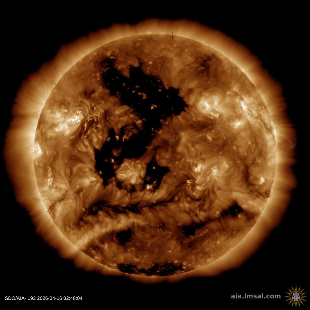 There are no significant coronal holes facing Earth. Credit: NASA/SDO | more data