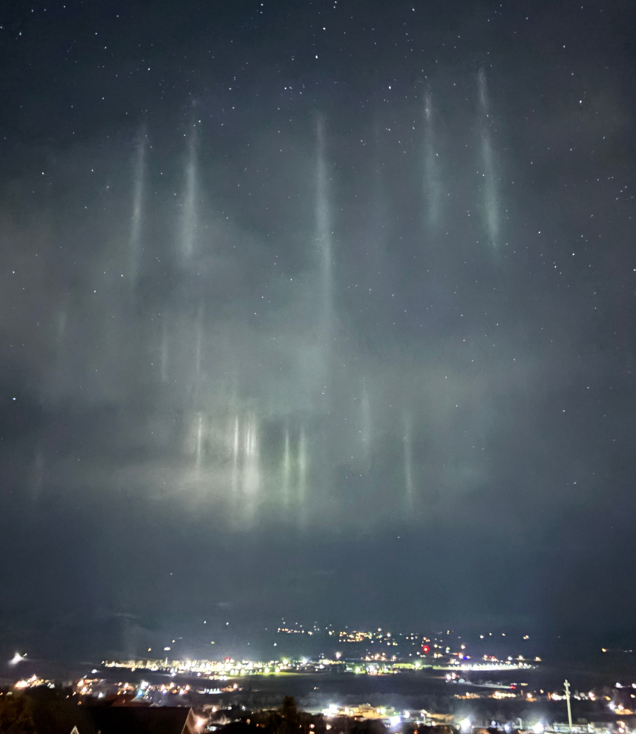 "At the time, the air temperature was 12 degrees Fahrenheit and dropping," she says."The pillars were very bright white, and lasted for about an hour."