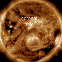 Solar wind flowing from this new coronal hole should reach Earth on Dec. 2nd.