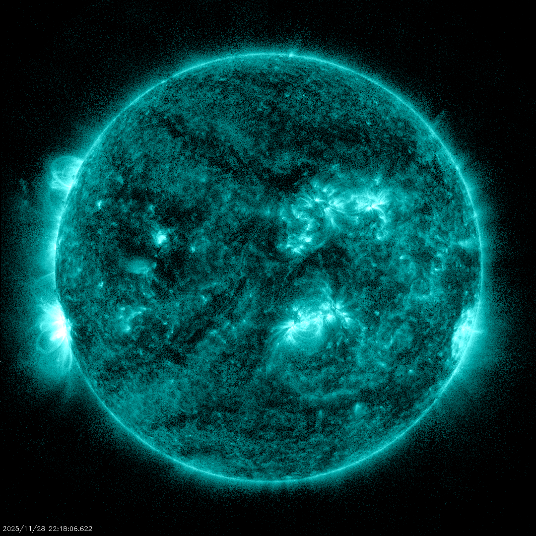 A pulse of extreme ultraviolet radiation from this flare ionized Earth's upper atmosphere, producing a minor shortwave radio blackout over the South Pacific Ocean. Radio transmissions at frequencies below 20 MHz "browned out" around 22:22 UTC on Nov. 28th.