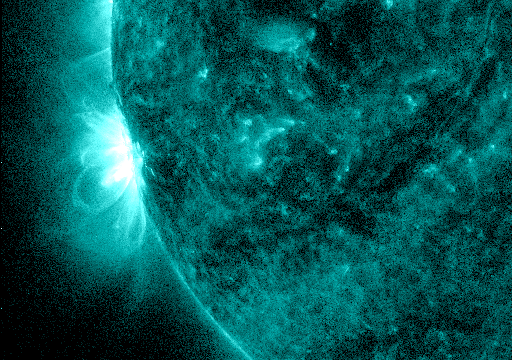 BIG SUNSPOT ALERT: A potentially dangerous sunspot is emerging over the sun's southeastern limb. Yesterday, while it was still partially eclipsed by the edge of the sun, it produced an impulsive M6-class solar flare (shown below). The true value of the flare may have been X-class.