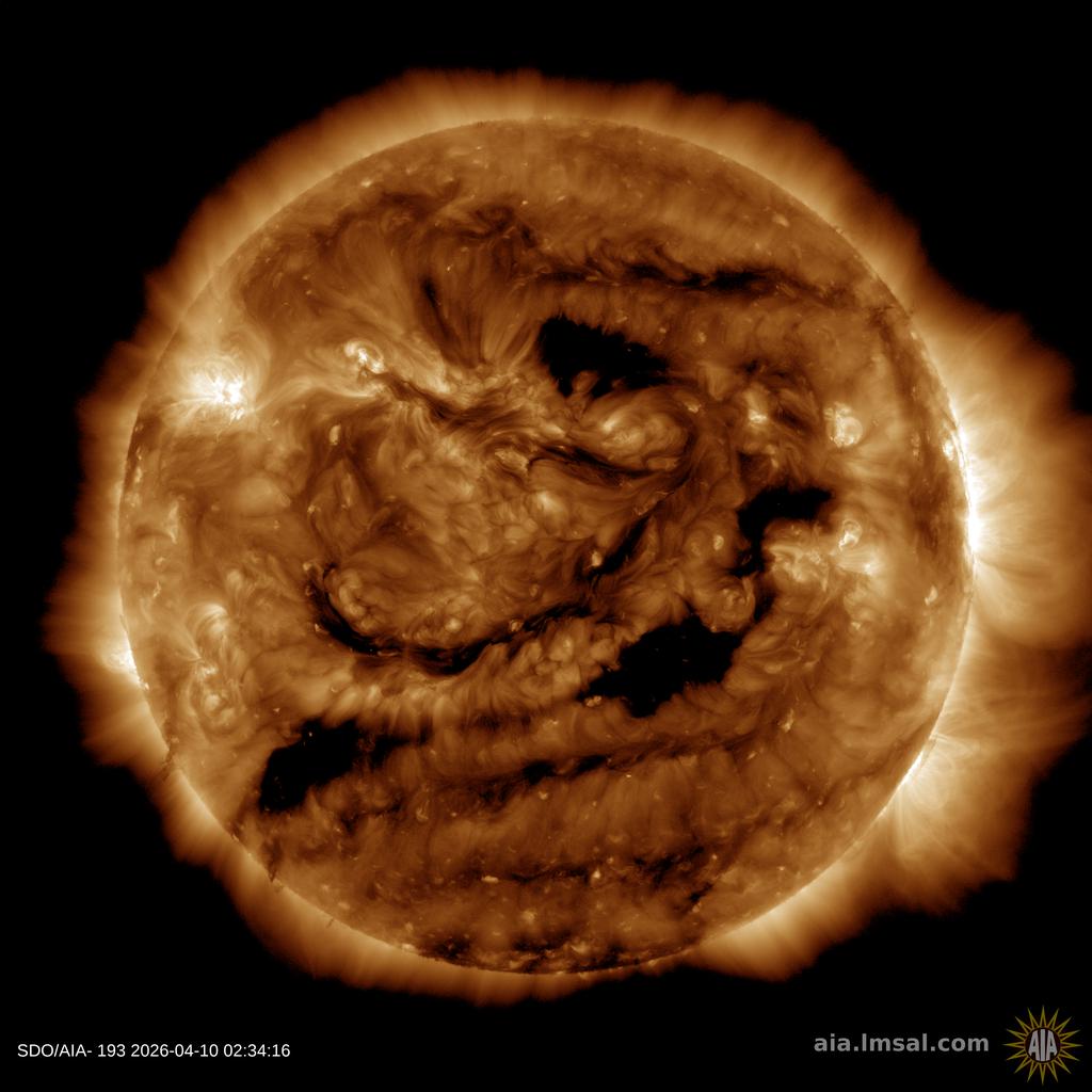CO-ROTATING INTERACTION REGION: Minor G1-class geomagnetic storms are possible on April 10th when a co-rotating interaction region (CIR) is expected to hit Earth. CIRs are transition zones between fast and slow streams of solar wind. They contain shock waves and enhanced magnetic field that do a good job sparking high-latitude auroras. Aurora alerts: SMS Text