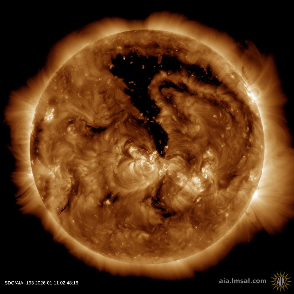 CME IMPACT SPARKS GEOMAGNETIC STORM: As predicted, a CME struck Earth on Jan. 10th, sparking a G2-class geomagnetic storm. Earth's magnetic field is still reverberating from the impact. Minor G1-storms could continue through Jan. 12th. CME impact alerts: SMS Text