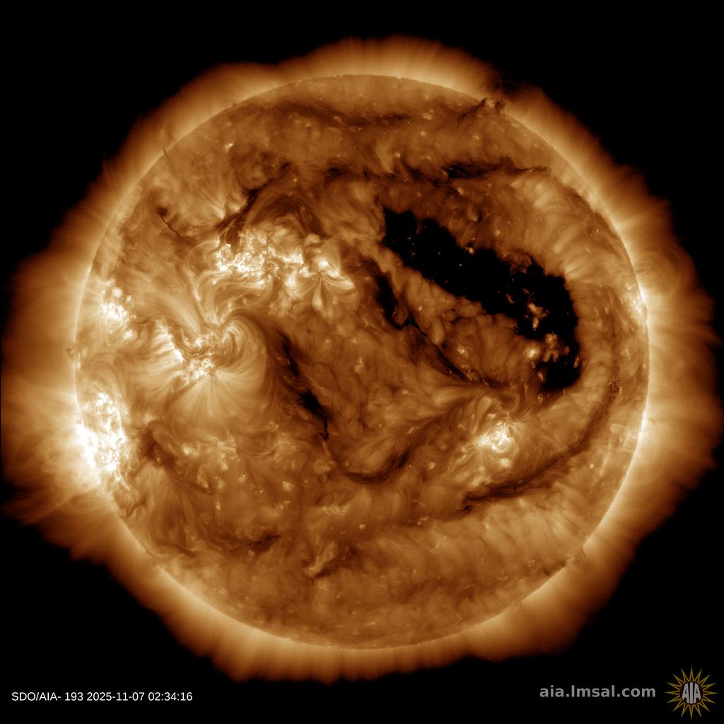 The twisted magnetic roots of this sunspot are torqued and full of tension. Strong flares are how it tries to relax. NOAA forecasters say there is an 80% chance of M-class solar flares and a 35% chance of powerful X-flares on Nov. 7th. Solar flare alerts: SMS Text.