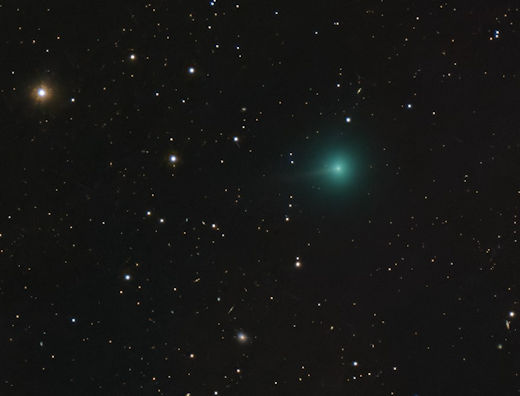 "Our skies were crystal clear," says Bartlett. "I was able to grab twenty-six 90 second exposures using my C14 hyperstar with an APS-C sensor. The comet's color and tail were easily viewable on my computer screen in each 90 second exposure."