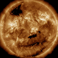 There are no significant equatorial coronal holes on the Earthside of the sun.