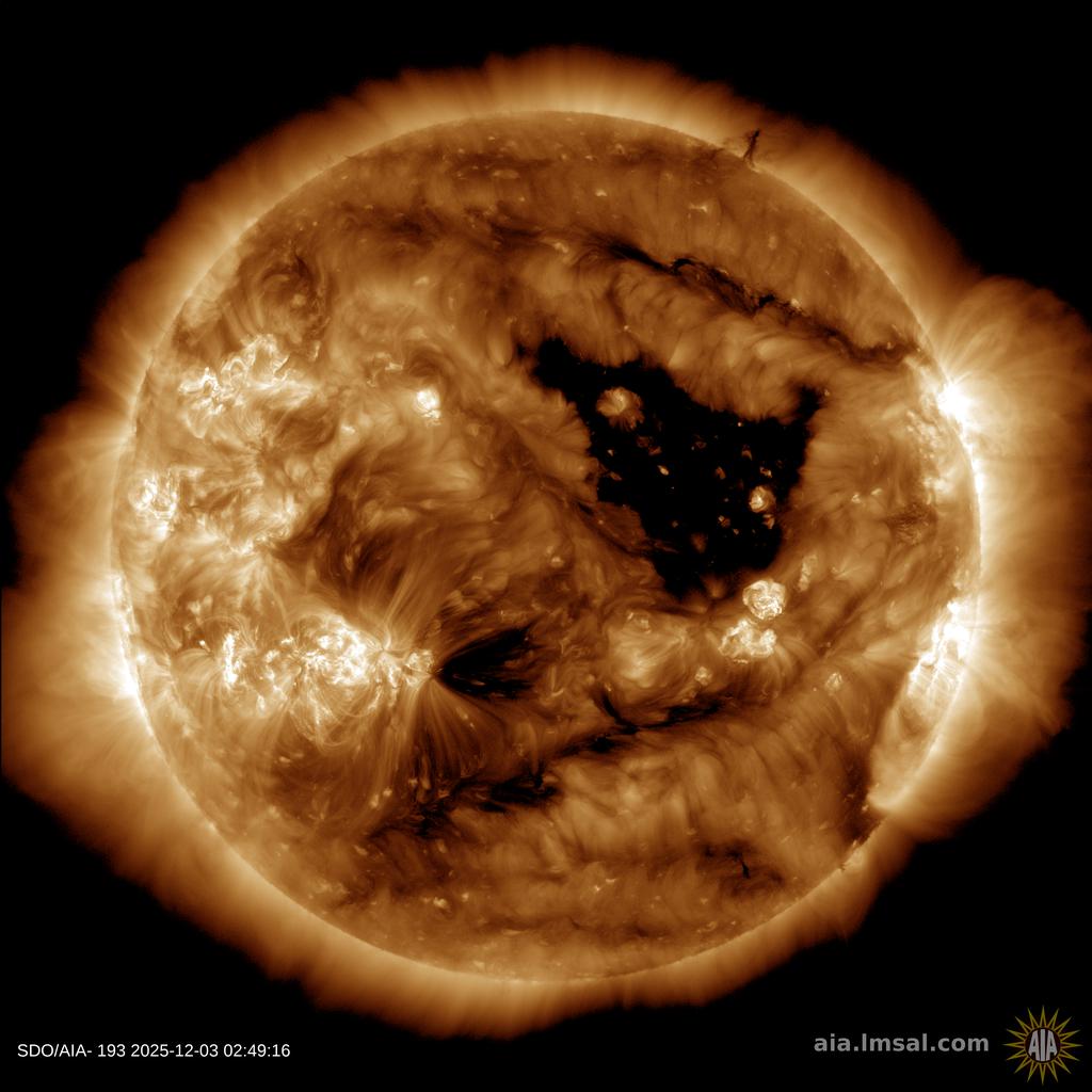 GEOMAGNETIC STORMS PREDICTED: A new NOAA model of yesterday's X2-class solar flare and CME suggests that the CME might not miss Earth after all. The storm cloud could graze our planet on Dec. 3rd. Moreover, the CME will scoop up a solar wind stream just ahead of it, adding heft to the potential impact. G2-class geomagnetic storms are possible on Dec. 3-4. Aurora alerts: SMS Text.