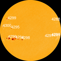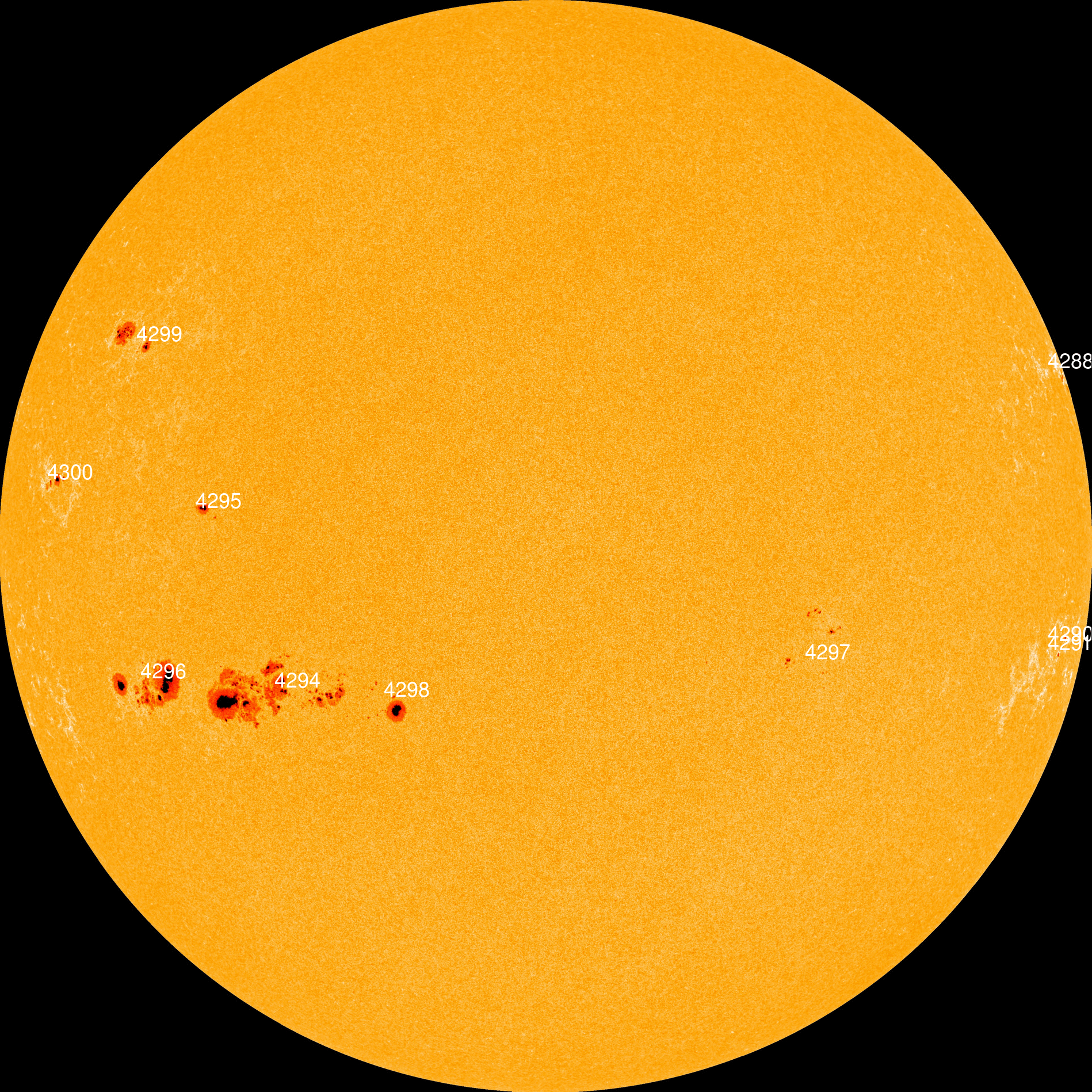 To be clear, 4294-4296 is actually two sunspots. Their close proximity makes them appear as a single behemoth--an unfair advantage vs. Carrington. Even so, strong explosions are likely. The crowding of the two sunspots' magnetic canopies raises the odds of reconnection and an X-flare of their own. Any explosions today will be geoeffective. Solar flare alerts: SMS Text.